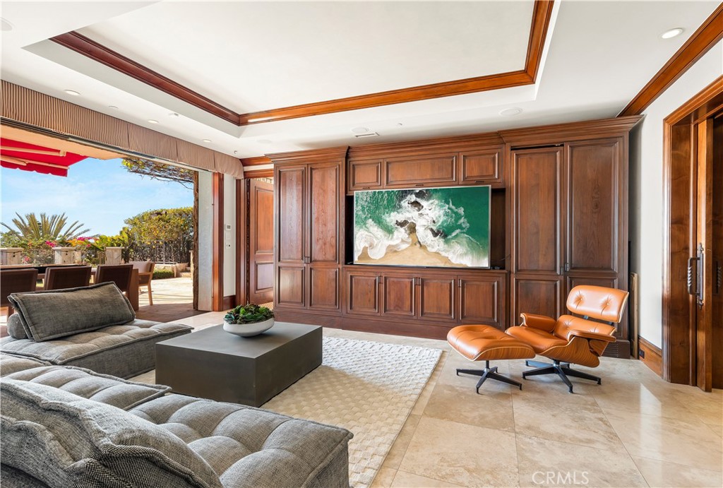 EMERALD BAY | LAGUNA BEACH | Built ground up in 2007, this iconic Emerald Bay estate is perched on the exclusive north point, showcasing commanding unobstructed and direct facing views of Irvine Cove, Catalina Island, and unforgettable Pacific sunsets. Encompassing approximately 7,000 square feet, the residence offers five bedrooms--each with an en suite bath and walk-in closet--along with two additional half baths. Designed for both elegance and livability, the home includes formal living and dining rooms, a chef's kitchen with adjoining family and casual dining areas, and two private offices. The luxurious primary suite serves as a true retreat, complete with a spa-inspired bathroom, oversized walk-in shower, soaking tub, and dual walk-in closets. Indoor and outdoor living flow seamlessly. The grand entry courtyard features a fireplace and dining area, while the main-level terrace offers panoramic ocean views and an inviting lounge with a second outdoor fireplace. The lower level is an entertainer's dream, with a private rear yard that includes an outdoor kitchen, dining space, built-in barbecue, heated spa, fire pit seating, and a putting green--all set against the backdrop of dramatic white-water vistas.