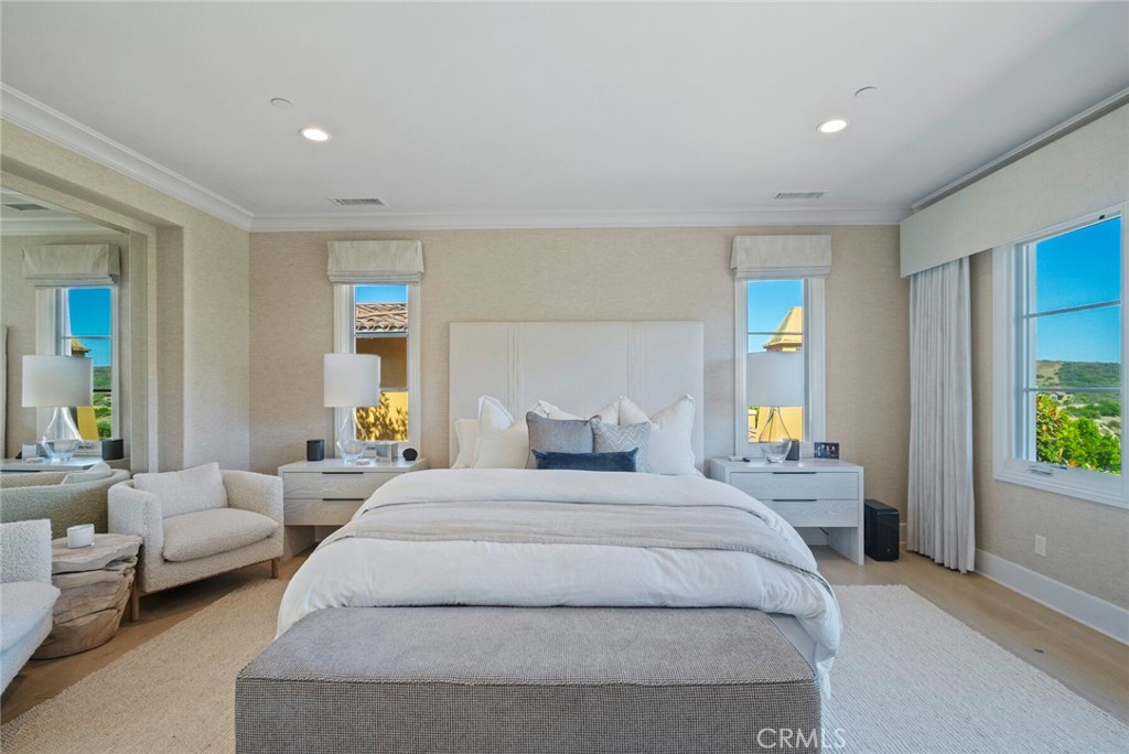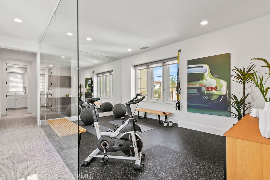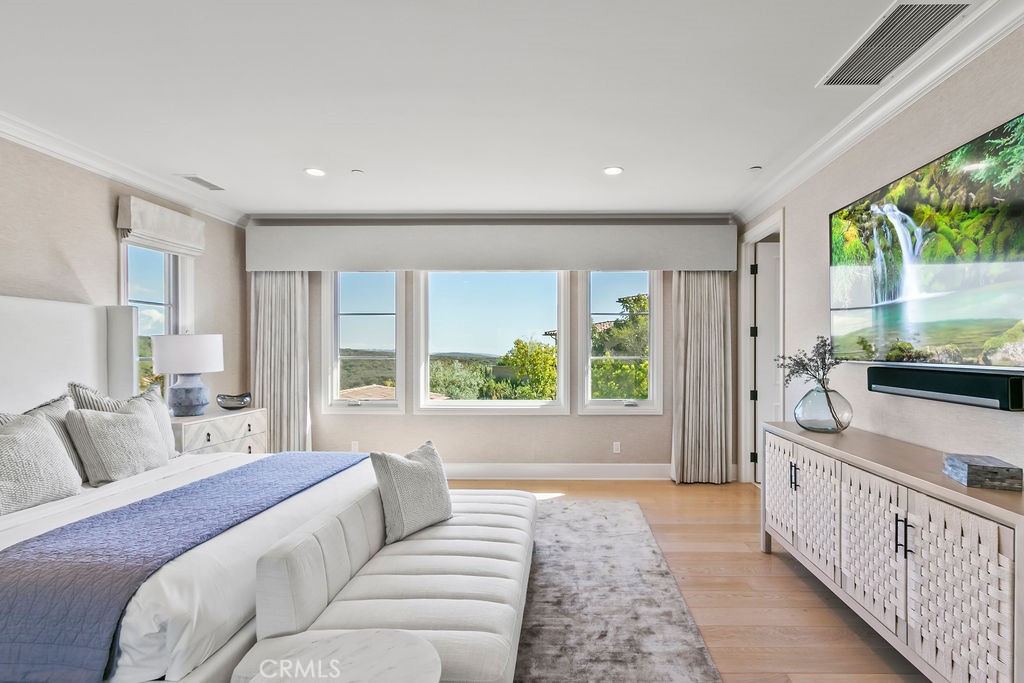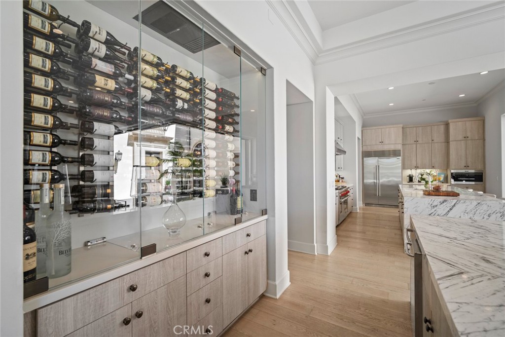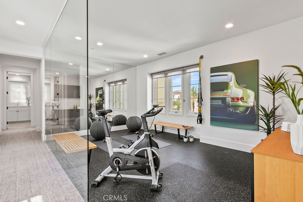 The well-thought-out floor plan includes four en-suite bedrooms and a home fitness center that can repurposed as an optional bonus room on the upper level, including a luxurious primary suite, a rare configuration in Newport Coast. A fifth en-suite guest bedroom is conveniently located on the main level in addition to a separate and private in-home office. Garaging for three vehicles plus an additional storage room complete this move in ready Fiano residence.