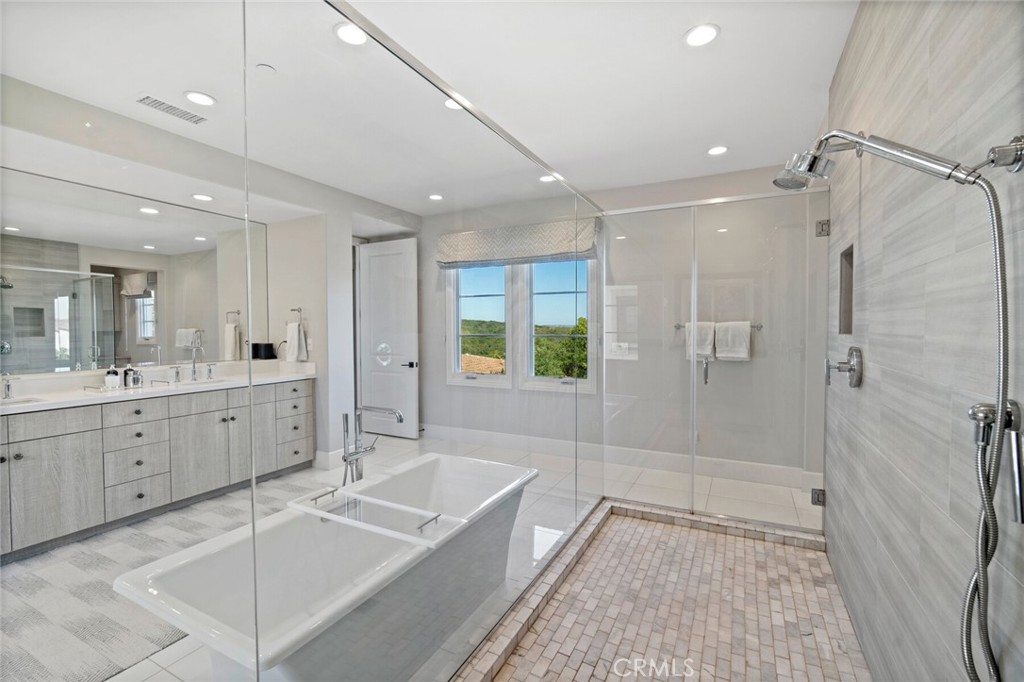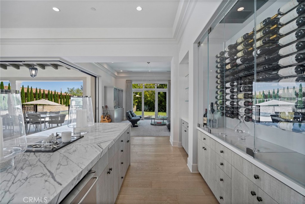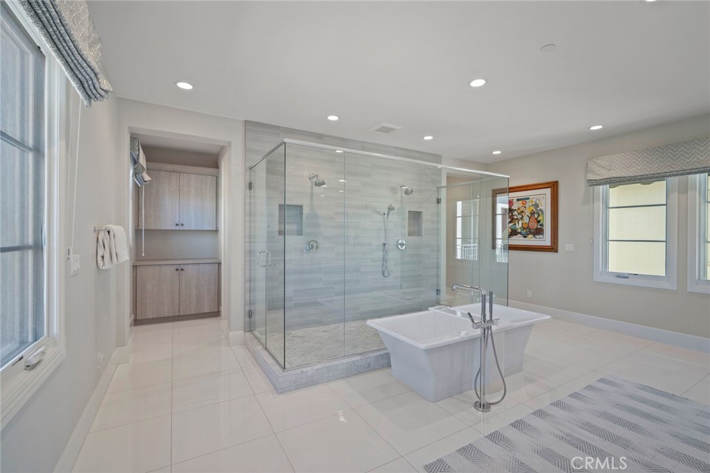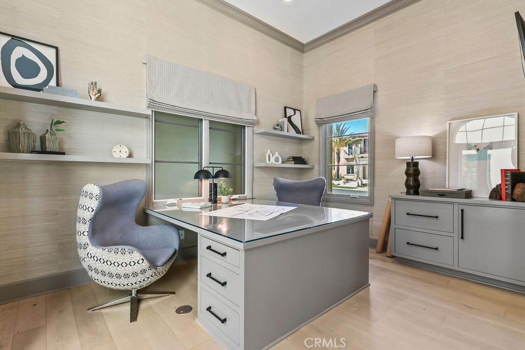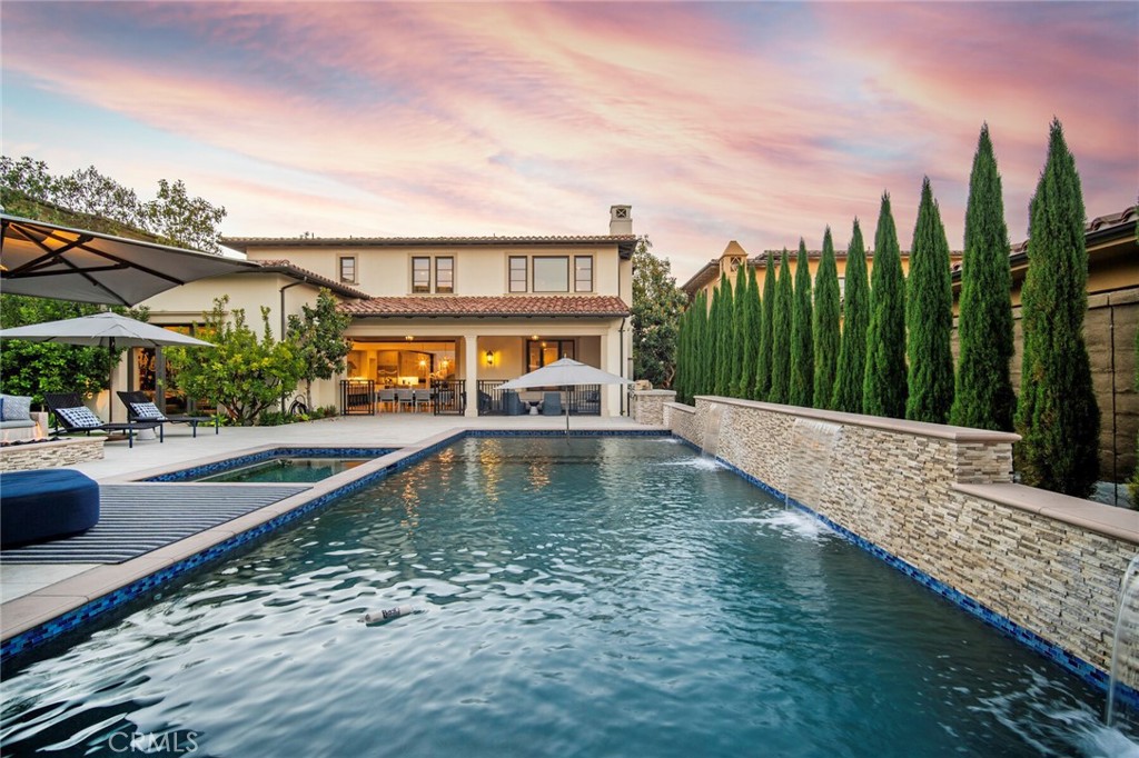 The well-thought-out floor plan includes four en-suite bedrooms and a home fitness center that can repurposed as an optional bonus room on the upper level, including a luxurious primary suite, a rare configuration in Newport Coast. A fifth en-suite guest bedroom is conveniently located on the main level in addition to a separate and private in-home office. Garaging for three vehicles plus an additional storage room complete this move in ready Fiano residence.