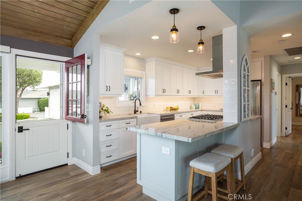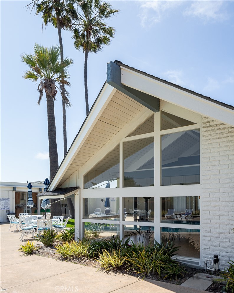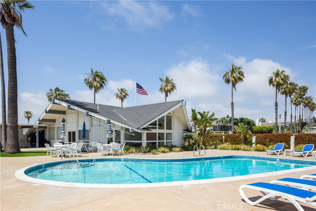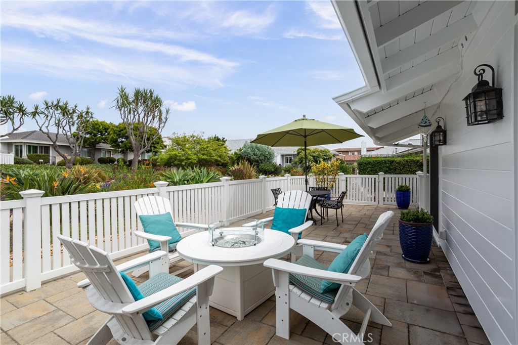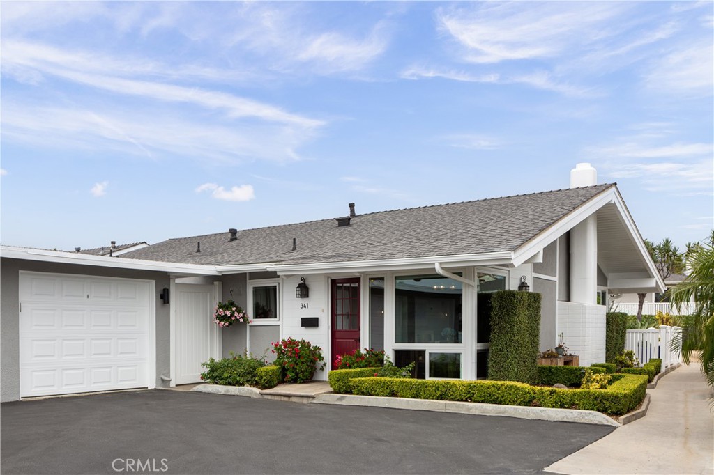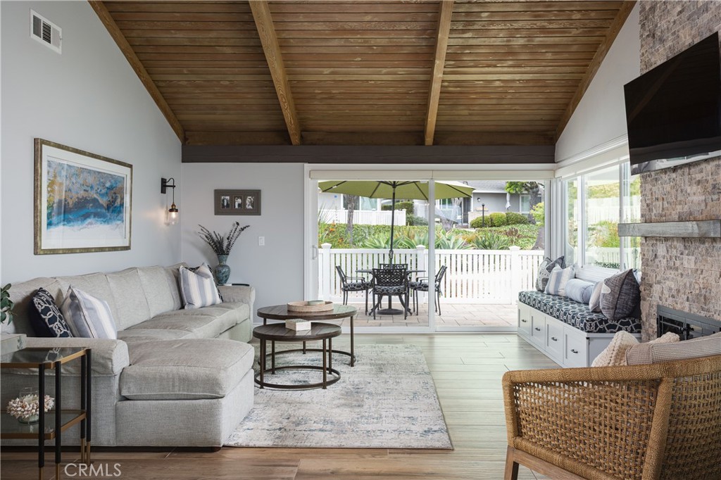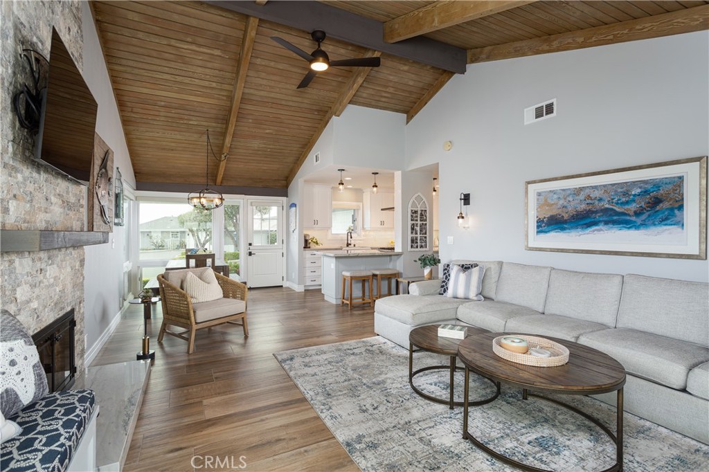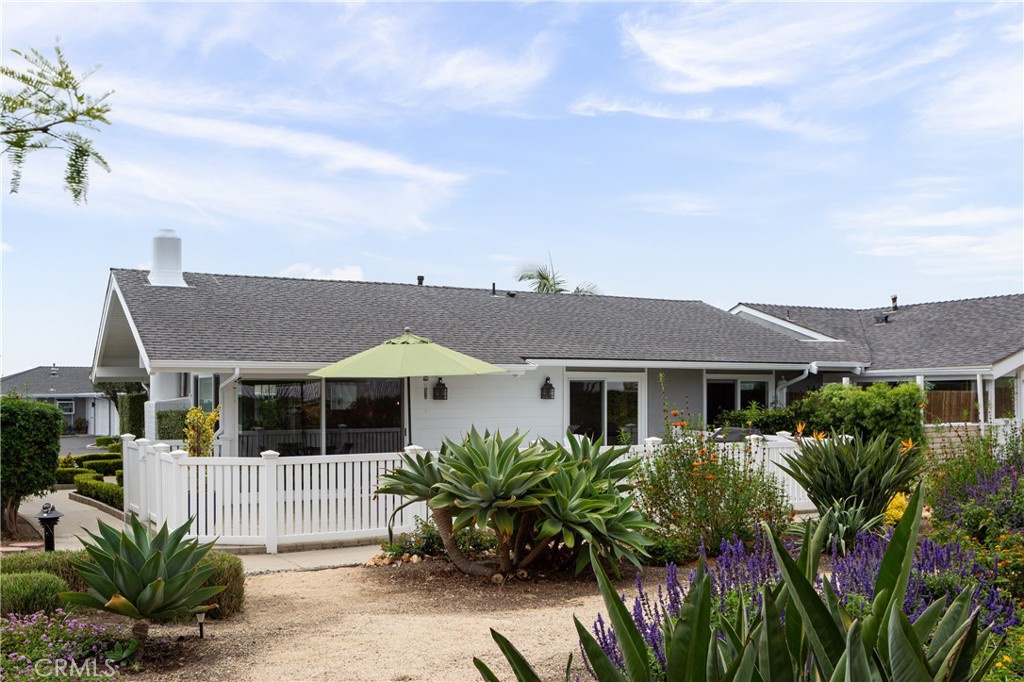 Welcome to a rare find in the heart of San Clemente's beloved 55+ Colony Cove community -- a completely remodeled mid-century beach cottage designed by renowned architect Chris Abel. Set just moments from the ocean, this home offers the best of laid back coastal living with thoughtful upgrades and timeless design. Soaring 14-foot cathedral ceilings with exposed wood beams set the tone as you enter the home, where peek-a-boo ocean views provide a picturesque backdrop to an open floor plan designed for easy living. The living room is anchored with a custom floor-to-ceiling fireplace clad in forged black steel and tempered glass. Indoor-outdoor flow leads to a serene patio oasis with a waterfall-fed stream and lush garden views -- your own private slice of nature. The kitchen is a true showstopper, featuring quartzite countertops, a handcrafted English farmhouse sink, Bosch appliances, and soft-close cabinetry. The Dutch door, pendant lighting, and porcelain wood-look tile add charm and durability throughout. Both bedrooms include custom barn doors, ceiling fans, and California Closets build-outs completed in 2024. Additional upgrades include a tankless water heater, Milgard windows throughout, updated electrical and plumbing, newer furnace, and newer garage roof and door. HOA has recently completed exterior painting, and the home is surrounded by beautifully maintained pathways that lead directly to the Sea Summit Trail and beaches. Located ideally between Dana Point and San Clemente, this community offers easy access to PCH and a paved bike trail extending four miles along the coast. Welcome to the ideal California coastal lifestyle.