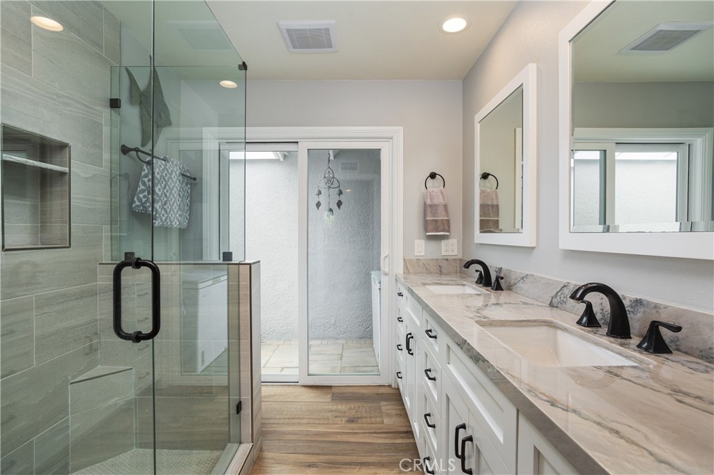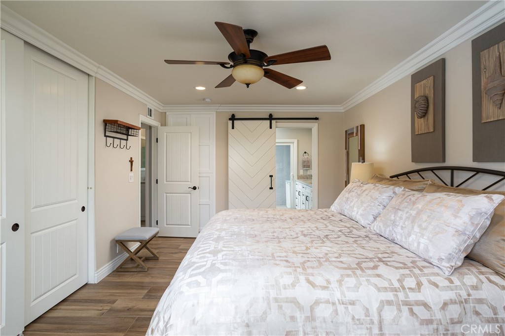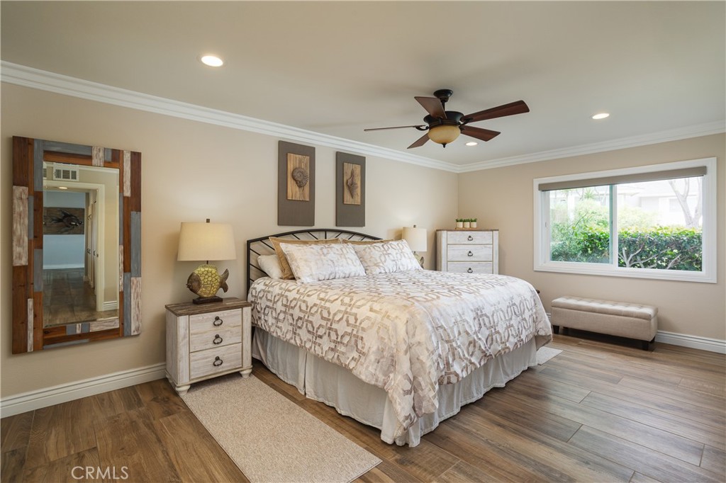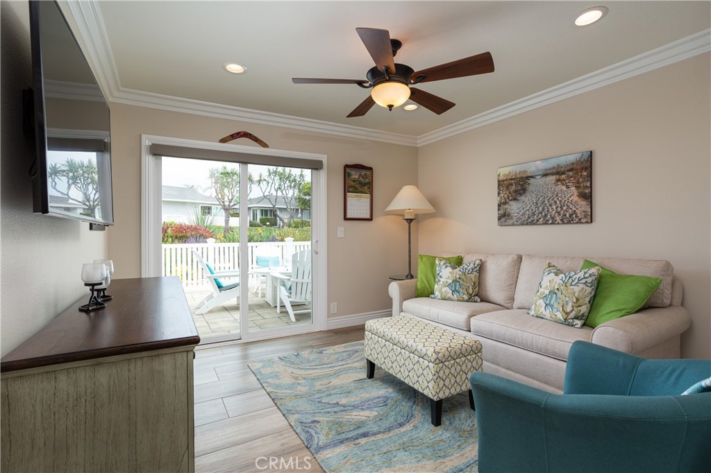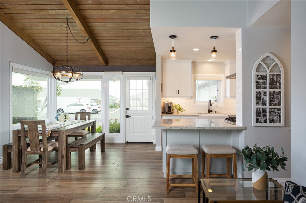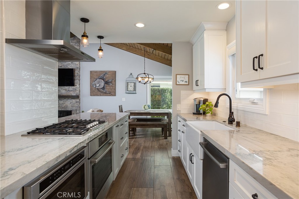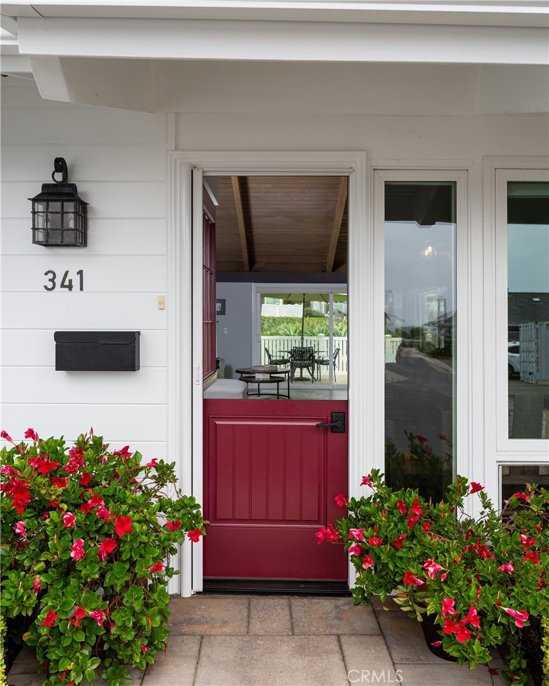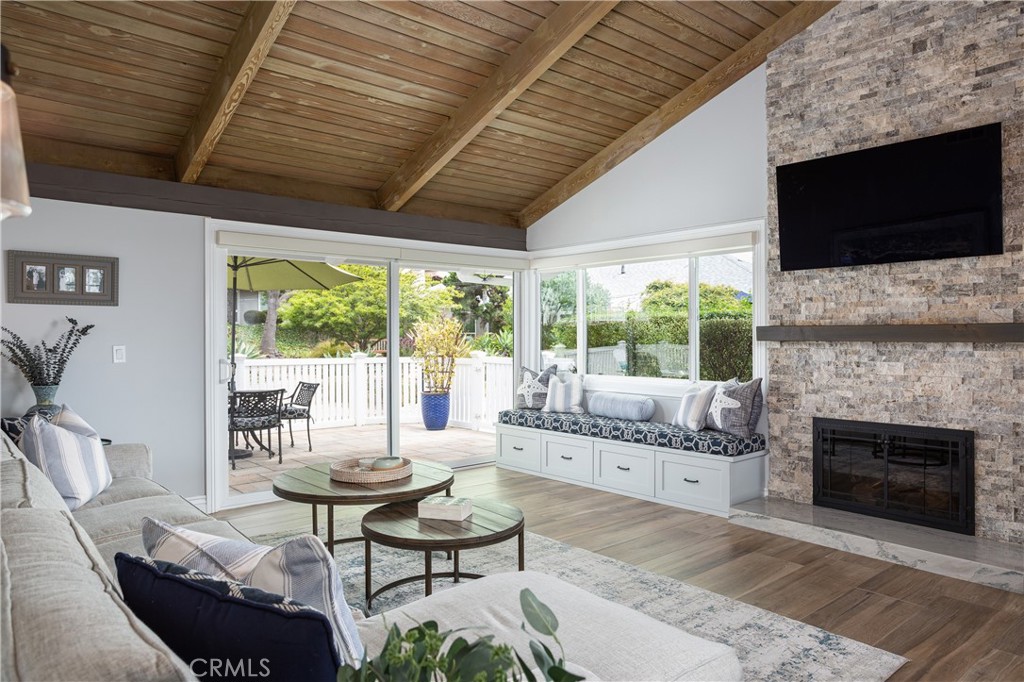 Welcome to a rare find in the heart of San Clemente's beloved 55+ Colony Cove community -- a completely remodeled mid-century beach cottage designed by renowned architect Chris Abel. Set just moments from the ocean, this home offers the best of laid back coastal living with thoughtful upgrades and timeless design. Soaring 14-foot cathedral ceilings with exposed wood beams set the tone as you enter the home, where peek-a-boo ocean views provide a picturesque backdrop to an open floor plan designed for easy living. The living room is anchored with a custom floor-to-ceiling fireplace clad in forged black steel and tempered glass. Indoor-outdoor flow leads to a serene patio oasis with a waterfall-fed stream and lush garden views -- your own private slice of nature. The kitchen is a true showstopper, featuring quartzite countertops, a handcrafted English farmhouse sink, Bosch appliances, and soft-close cabinetry. The Dutch door, pendant lighting, and porcelain wood-look tile add charm and durability throughout. Both bedrooms include custom barn doors, ceiling fans, and California Closets build-outs completed in 2024. Additional upgrades include a tankless water heater, Milgard windows throughout, updated electrical and plumbing, newer furnace, and newer garage roof and door. HOA has recently completed exterior painting, and the home is surrounded by beautifully maintained pathways that lead directly to the Sea Summit Trail and beaches. Located ideally between Dana Point and San Clemente, this community offers easy access to PCH and a paved bike trail extending four miles along the coast. Welcome to the ideal California coastal lifestyle.