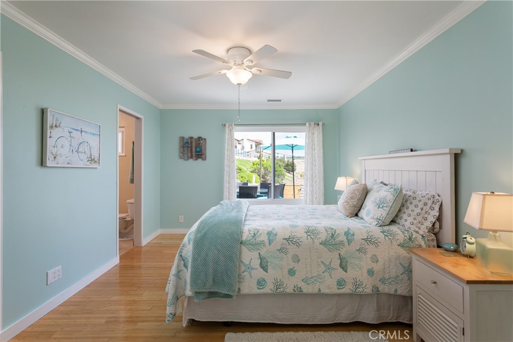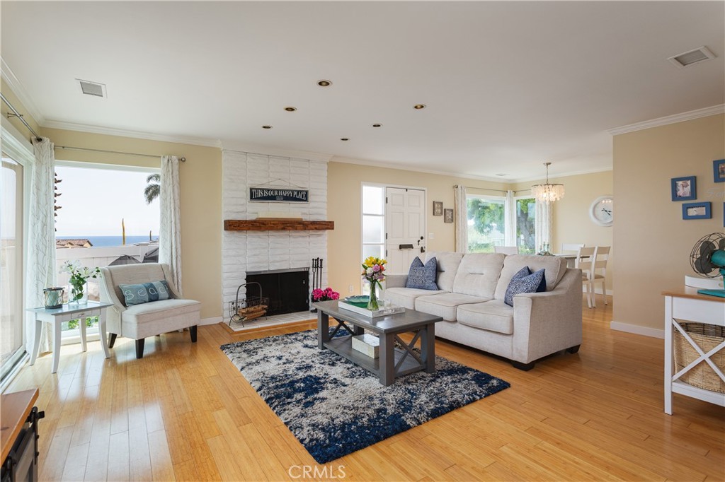 Spanning 1,260 square feet, the home features bamboo flooring, a spacious living room with a fireplace, and large windows that fill the space with natural light. A paved patio off the living room captures ocean vistas, perfect for lounging or al fresco dining.