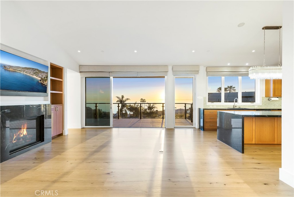 Walls of Fleetwood floor-to-ceiling glass open the great room to a spacious ocean-view deck, creating the perfect setting for entertaining, dining, and enjoying Emerald Bay's iconic Catalina sunsets and coastal breezes.