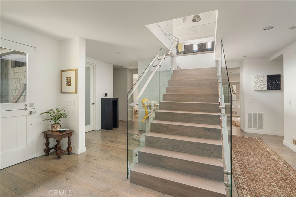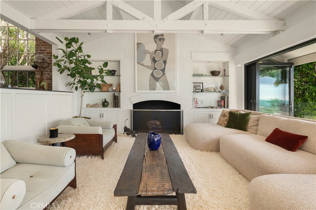 Guests arrive through a charming private courtyard, an inviting space featuring a fire pit and built-in seating--perfect for relaxed evenings under the coastal sky. Inside, the home reveals thoughtful architectural details at every turn, from the wide gallery-style hallways reminiscent of an art gallery to the warmth of three interior fireplaces that add character and comfort.