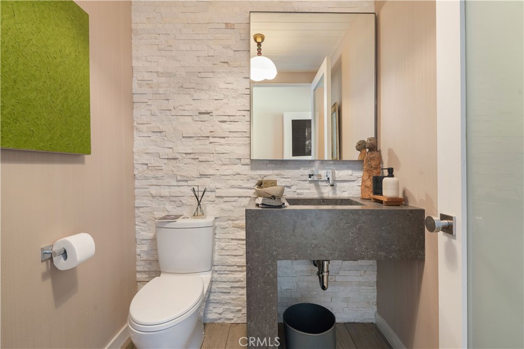 Also located on the main level are the primary suite and bath, a guest powder room, and access to a private rear yard retreat.